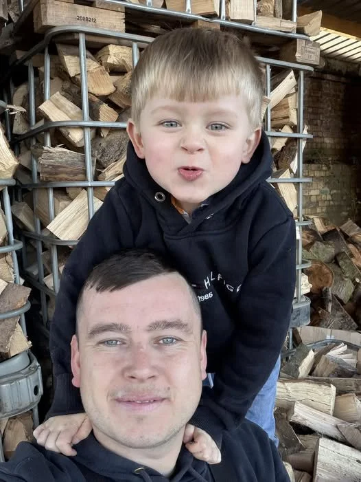 My names Ed (bottom of the photo) and I run Shropshire Kiln Dried Firewood, and at the top of the photo is Bill my little lad (the real boss and the star of the show)!